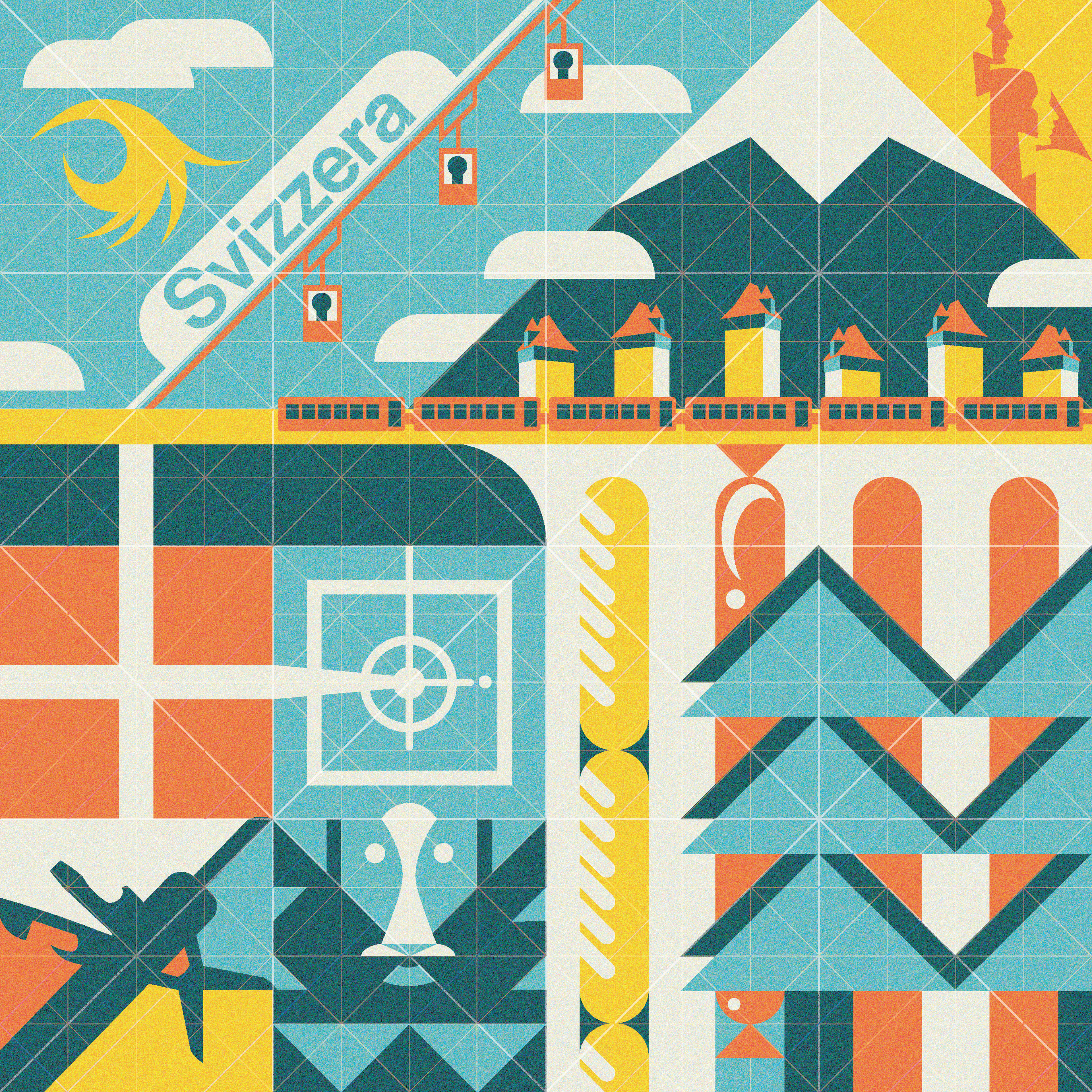 Grid systems are fundamental to all areas of graphic design. These illustrations are celebrating design and design history, so because of that I have made the grid a focus with this design by making the grid clearly visible to the observer.